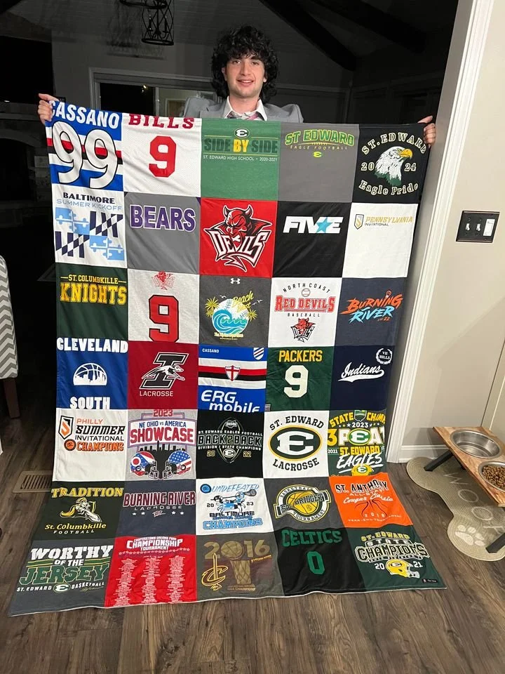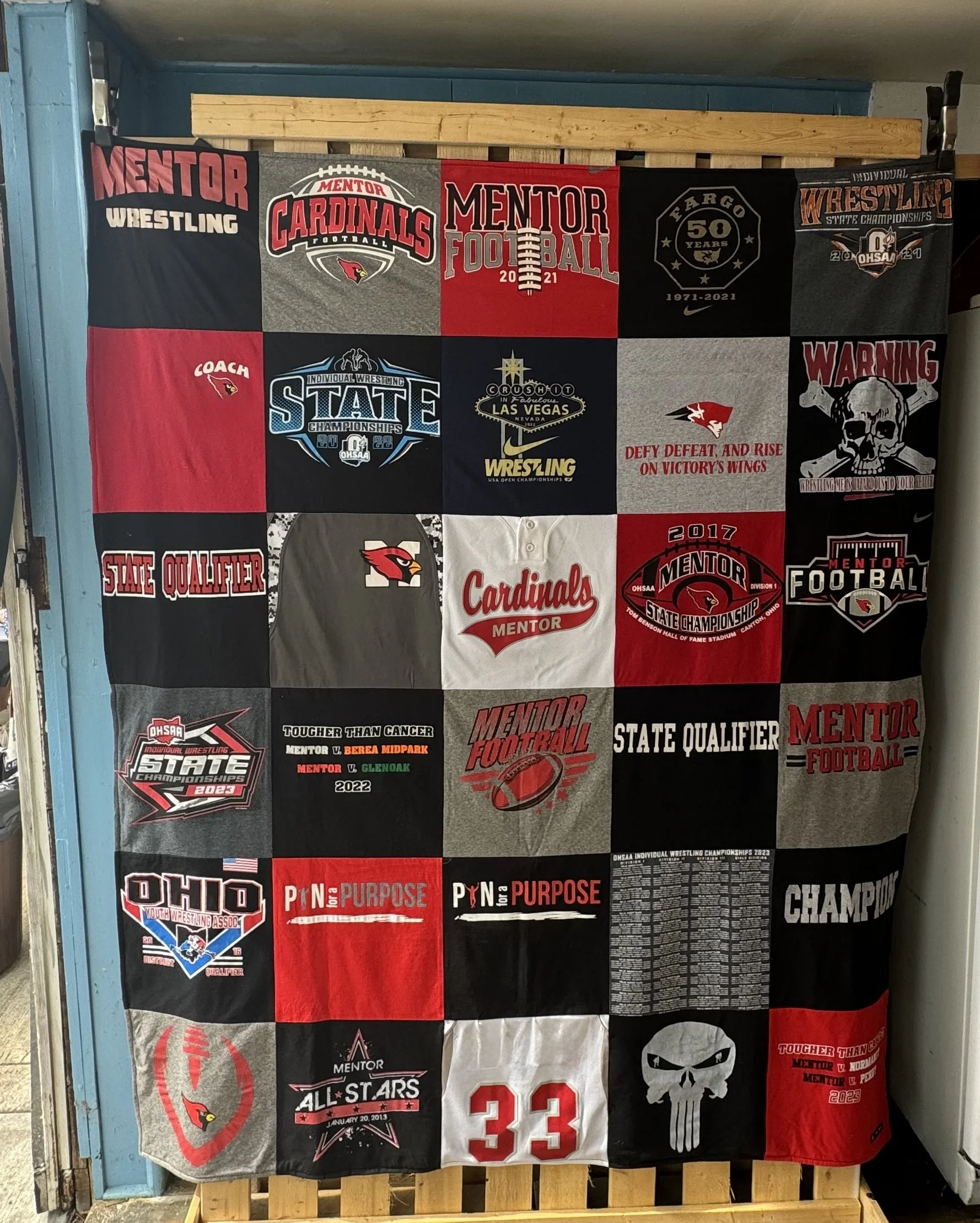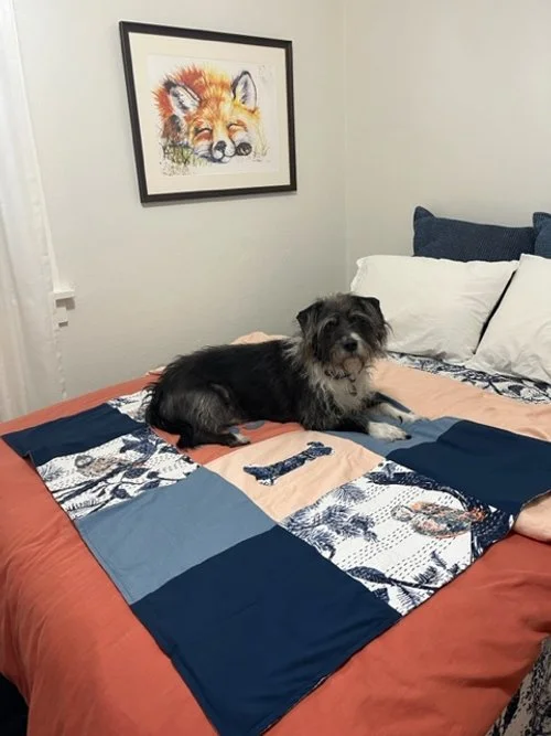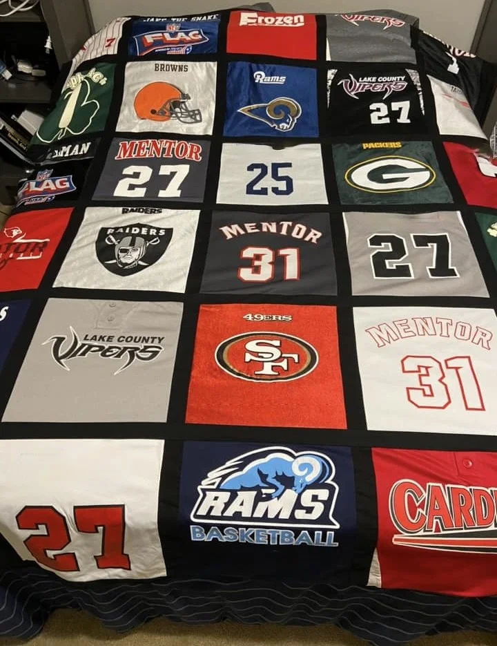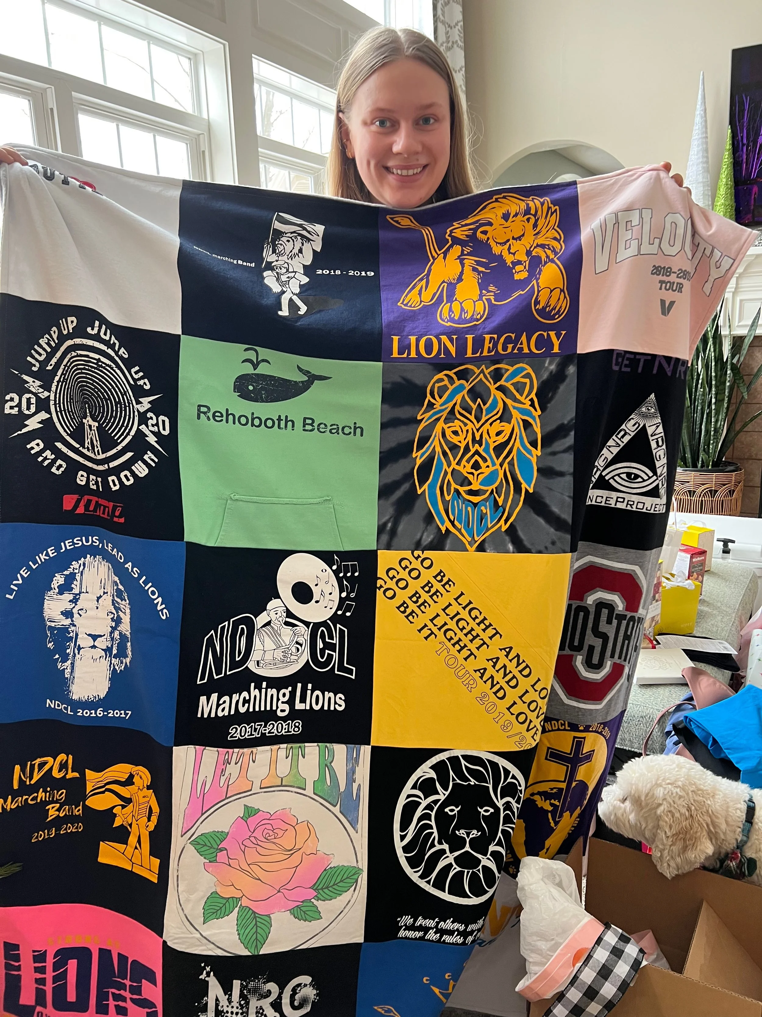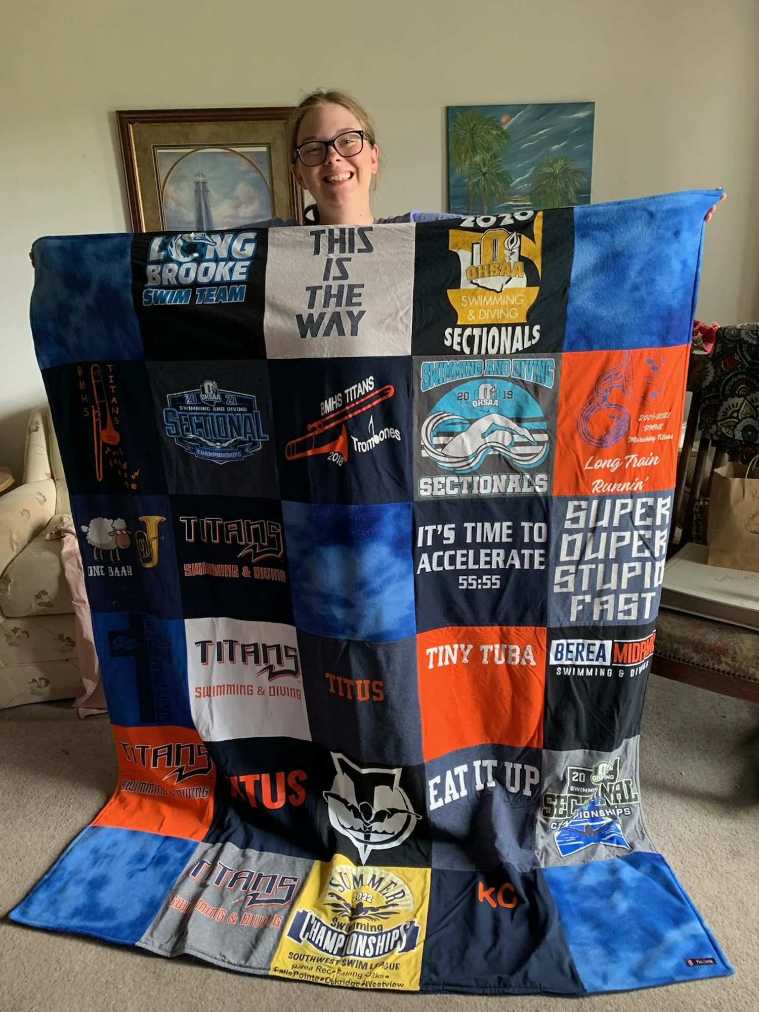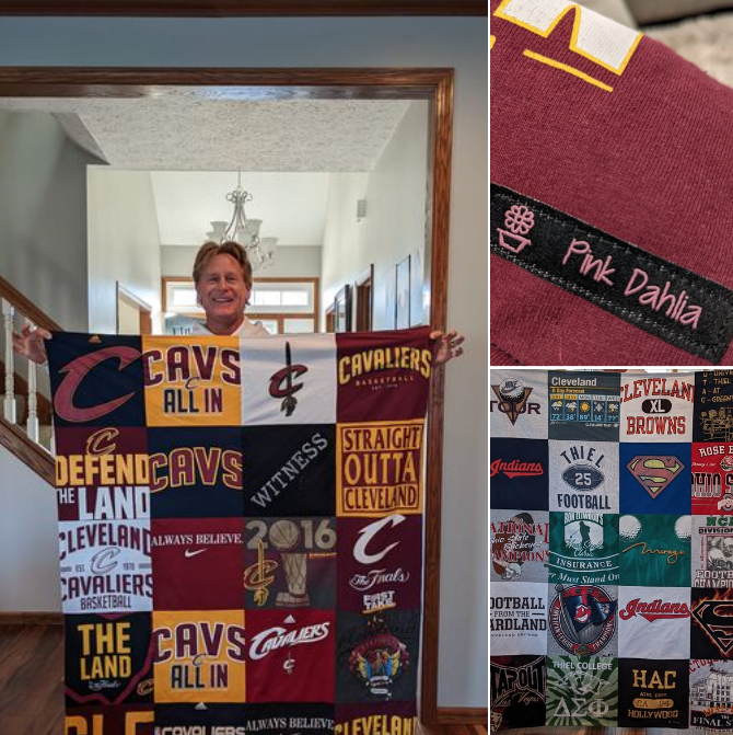 “Thanks to Pink Dahlia! I finally had a couple of blankets made from old t-shirts!
